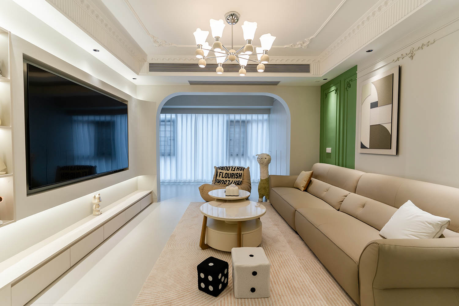從審美角度看,這套設(shè)計成功實現(xiàn)了網(wǎng)紅元素與經(jīng)典氣質(zhì)的平衡。它既有奶油風的溫柔治愈,又有現(xiàn)代風格的簡約利落;既能滿足社交展示的需求,又能提供私密舒適的個人空間。在這個125㎡的方寸之間,設(shè)計師用專業(yè)與創(chuàng)意,為業(yè)主打造了一個真正意義上的"理想家"——一個能讓人卸下疲憊、重獲能量的溫暖港灣