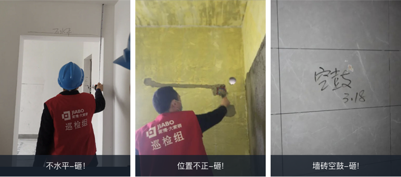 空鼓、對(duì)縫不齊等現(xiàn)象,現(xiàn)場(chǎng)立即砸掉重做,
